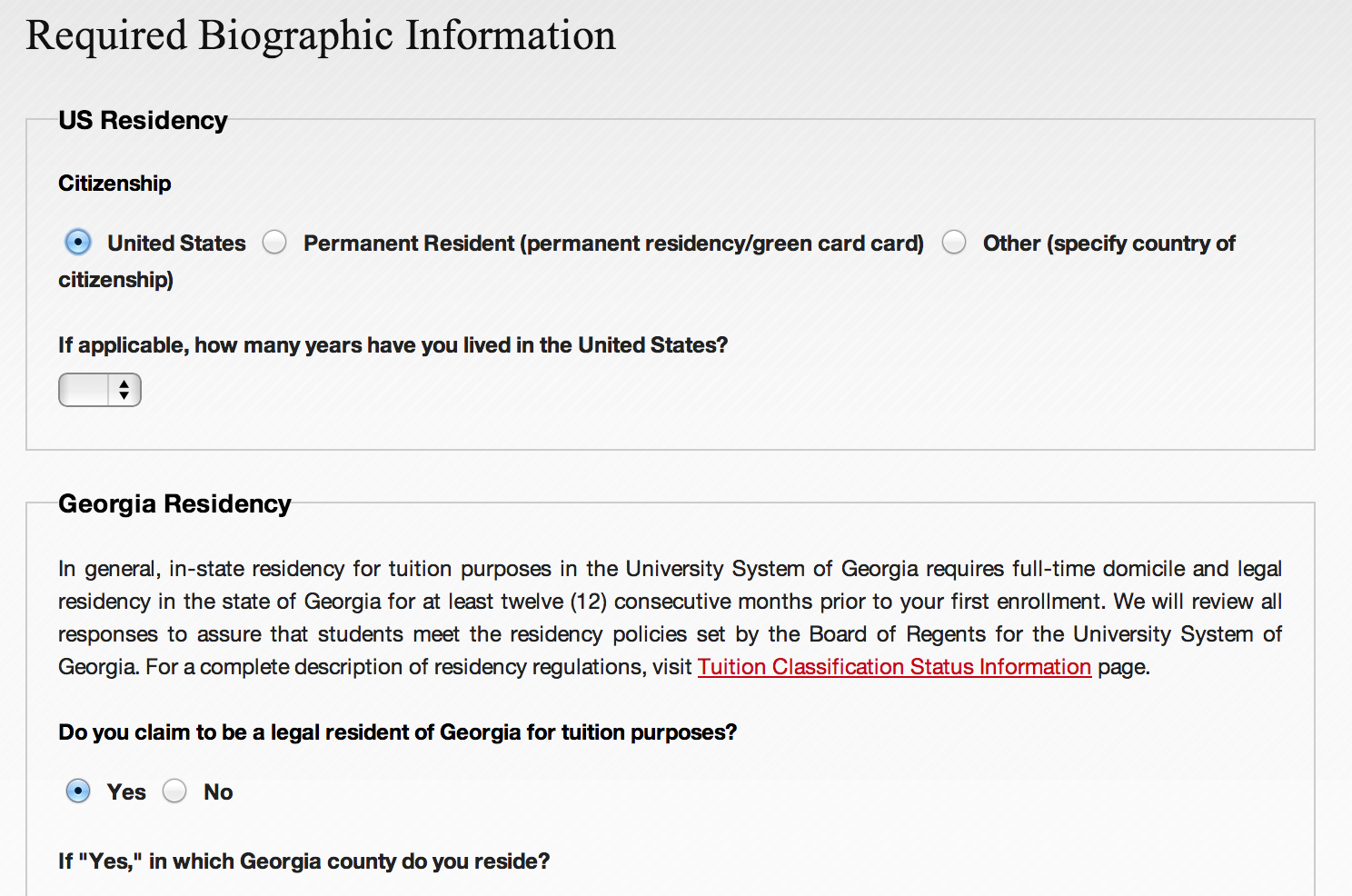 I am applying for college and was wondering which US residency AND Georgia residency options I should choose. I’ve attached screenshots of what all of the options on the application look like. Please get back to me as soon as possible (preferably by tomorrow afternoon) because I need to submit the application.”